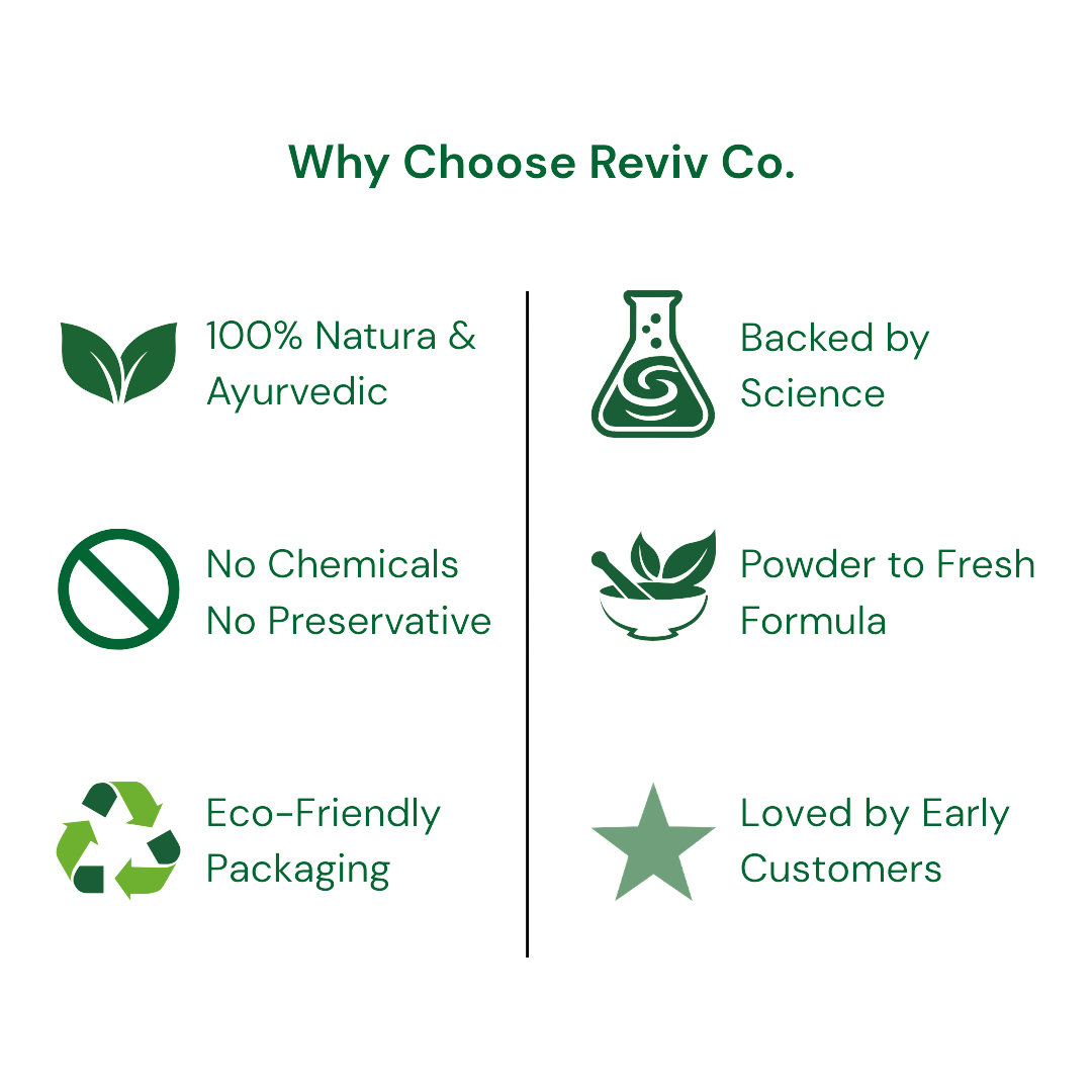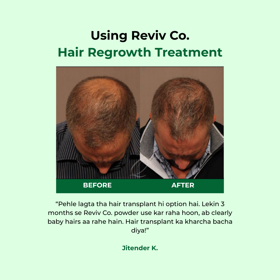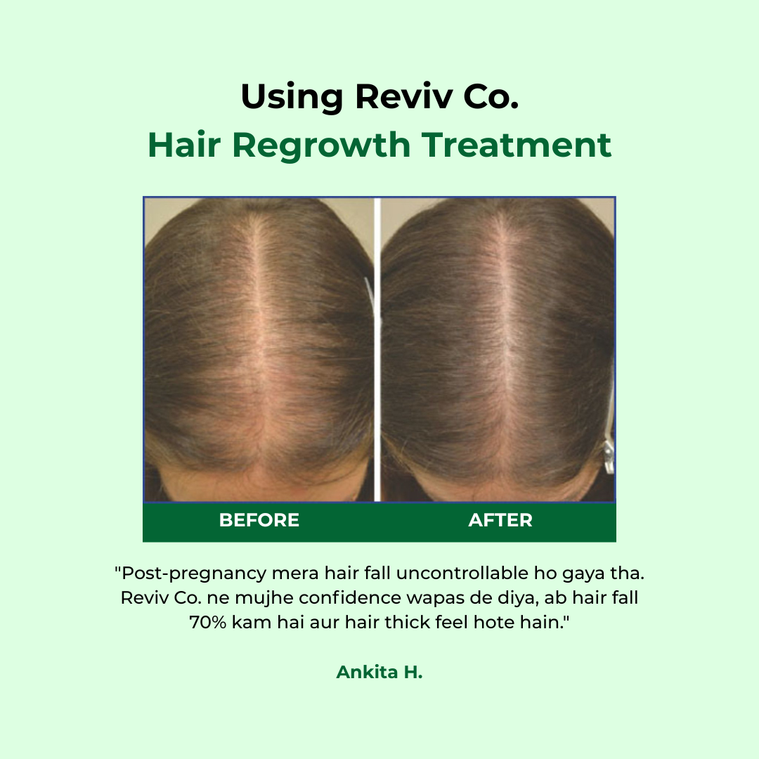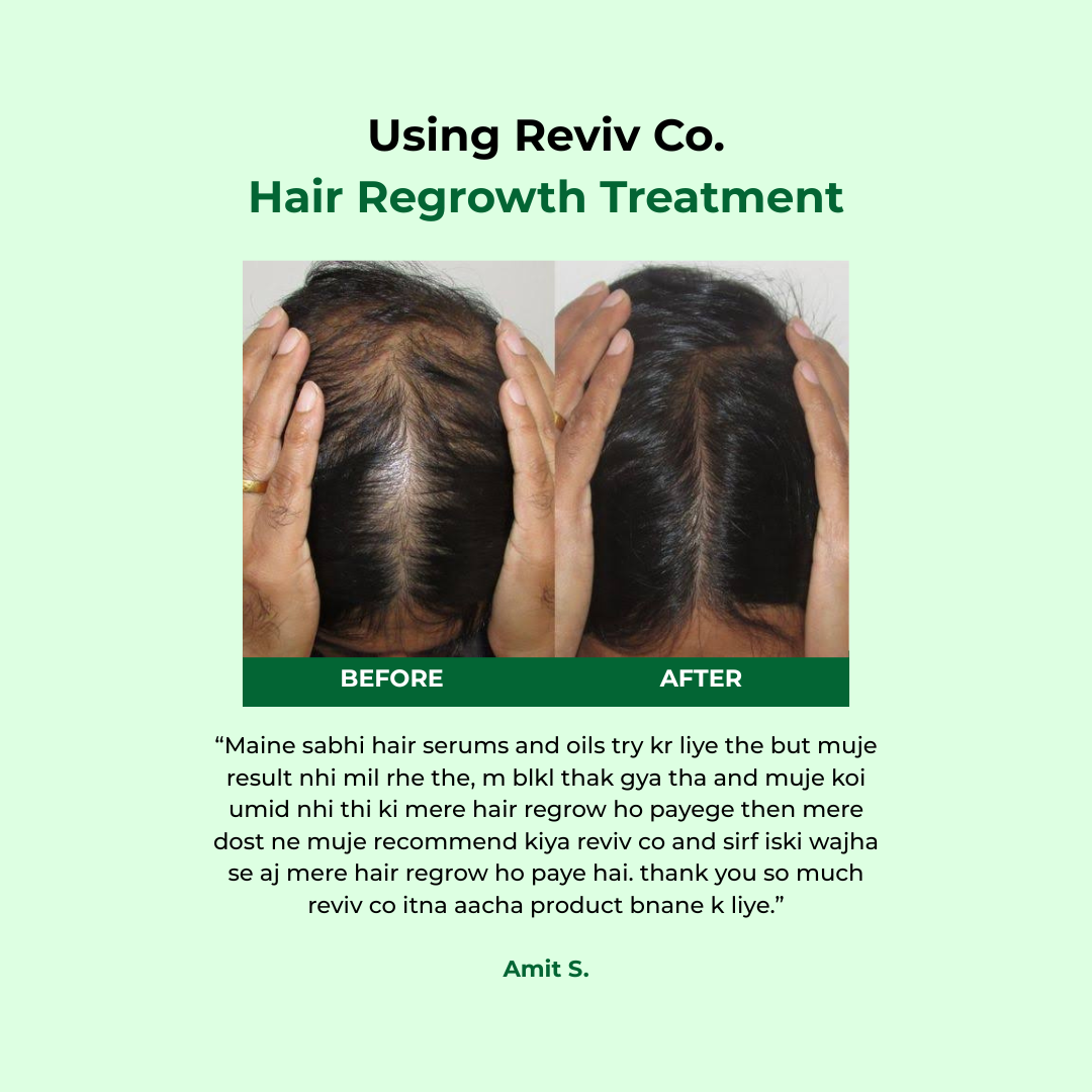 Yes, our formula is crafted with 7 clinically trusted Ayurvedic herbs like Bhringraj, Rosemary, and Amla that are known to stimulate dormant follicles, strengthen roots, and promote visible regrowth. Unlike chemical products, Reviv Co. works naturally to revive your hair from the roots.